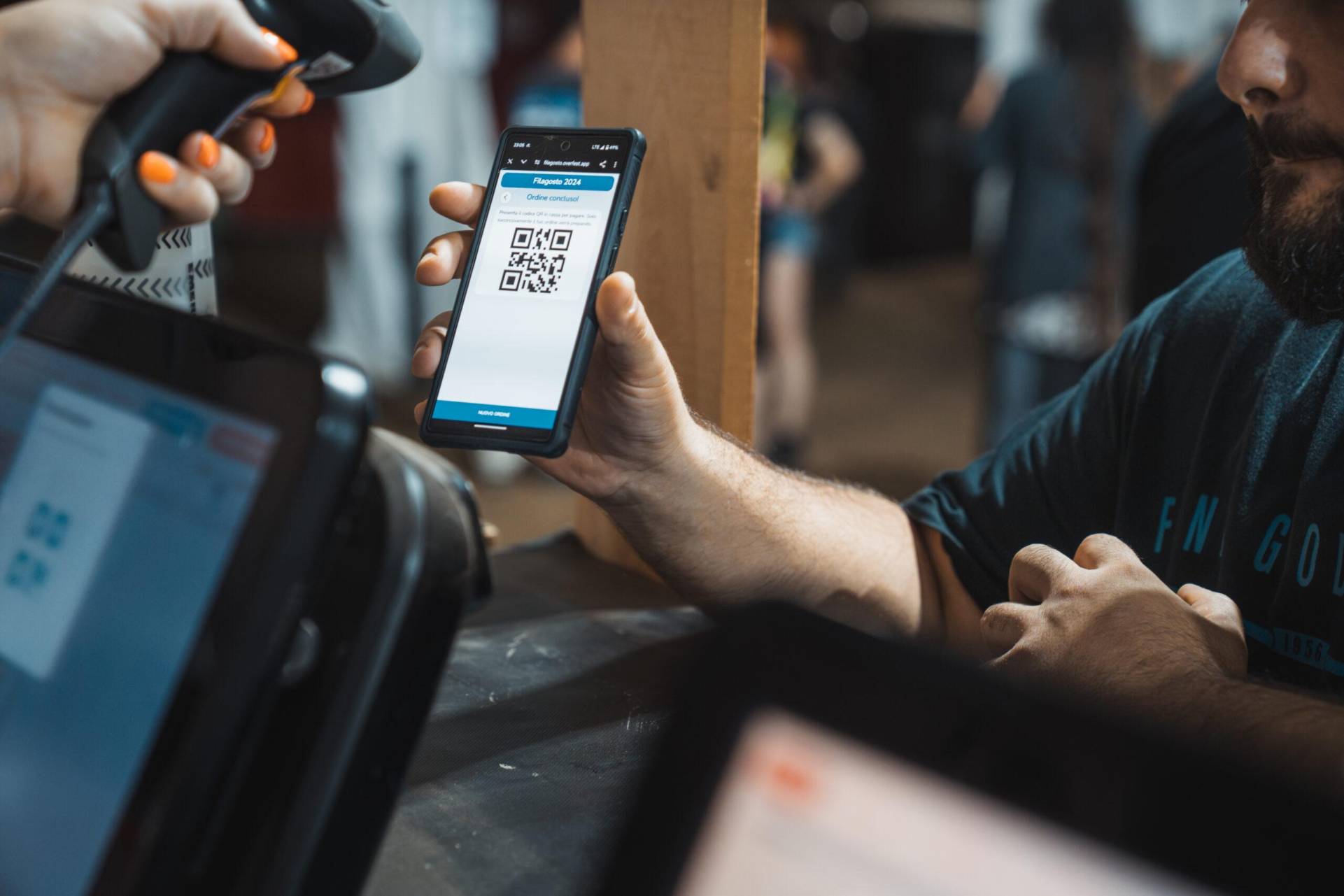 Per feste, sagre e grandi eventi utilizziamo casse digitali di ultima generazione, pensate per velocizzare il lavoro degli operatori e ridurre gli errori. Ogni transazione viene registrata in tempo reale e smistata automaticamente verso cucina, bar o magazzino, garantendo controllo preciso e trasparenza sugli incassi. Inoltre, il sistema consente di attivare pagamenti digitali e cashless tramite pagina web dedicata e QR code personalizzati, così i clienti possono pagare in modo rapido e sicuro con smartphone o carta.
